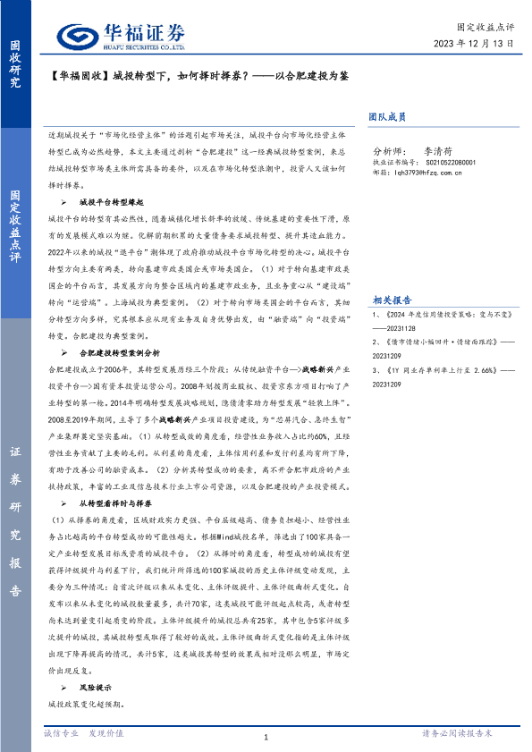 【华福证券】【20231213】以合肥建投为鉴:城投转型下,如何择时择券?-15页