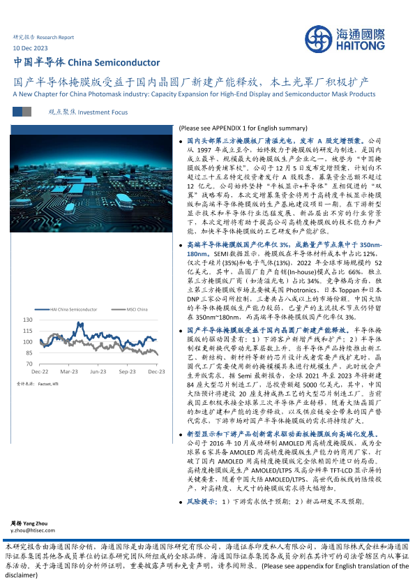 【海通国际】【20231210】中国半导体:国产半导体掩膜版受益于国内晶圆厂新建产能释放,本土光罩厂积极扩产-11页