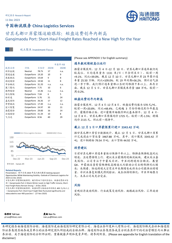 【海通国际】【20231211】中国物流服务:甘其毛都口岸蒙煤运输跟踪:短盘运费创年内新高-10页