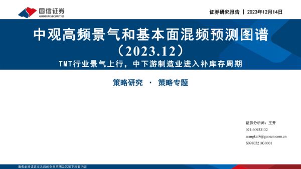 【国信证券】【20231214】中观高频景气和基本面混频预测图谱(2023.12):TMT行业景气上行,中下游制造业进入补库存周期-52页
