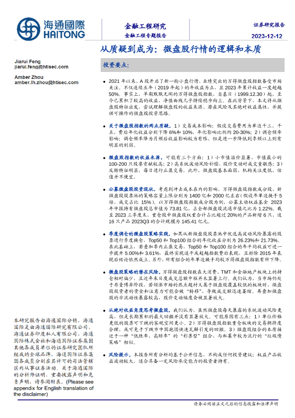 【海通国际】【20231212】从质疑到成为:微盘股行情的逻辑和本质-27页