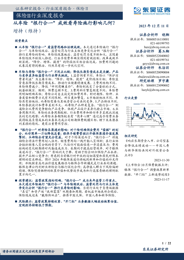 【东吴证券】【20231211】保险Ⅱ行业深度报告:从车险“报行合一”成效看寿险施行影响几何?-22页
