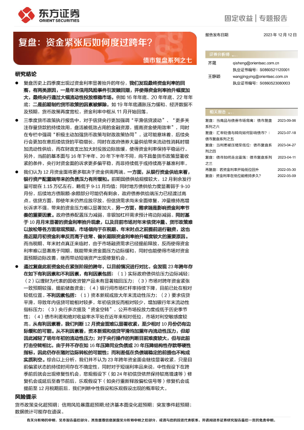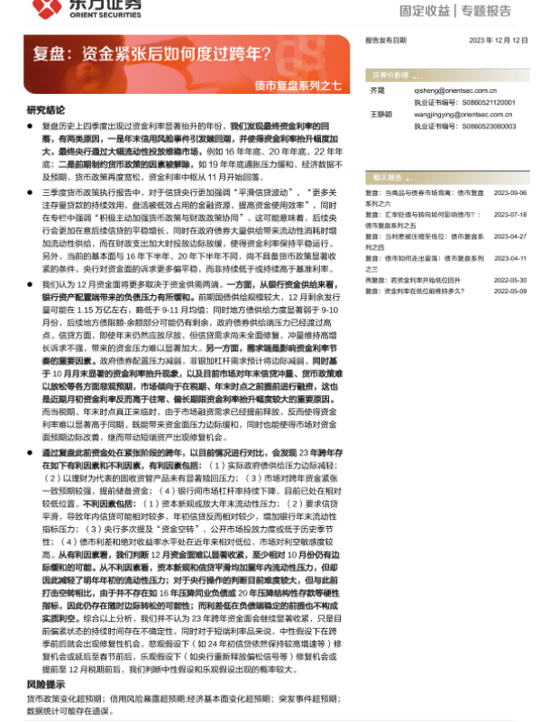 【东方证券】【20231212】债市复盘系列之七:复盘:资金紧张后如何度过跨年?-20页