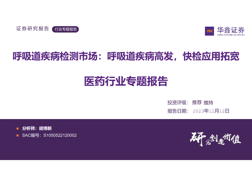 医药行业 市场分析 快速检测 投资建议 呼吸道疾病