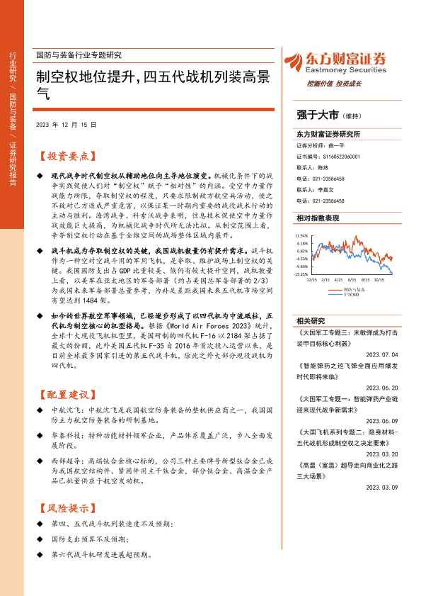 【东方财富证券】【20231215】国防与装备行业专题研究:制空权地位提升,四五代战机列装高景气-24页