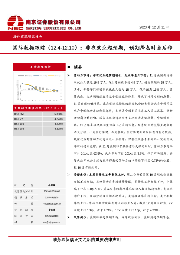 【南京证券】【20231211】国际数据跟踪:非农就业超预期,预期降息时点后移-14页