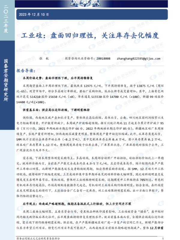 【国泰君安期货】【20231210】工业硅:盘面回归理性,关注库存去化幅度-10页