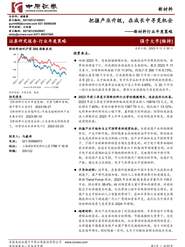 【中原证券】【20231130】新材料行业年度策略:把握产业升级,在成长中寻觅机会-36页