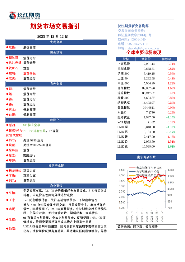 【长江期货】【20231212】期货市场交易指引-20页