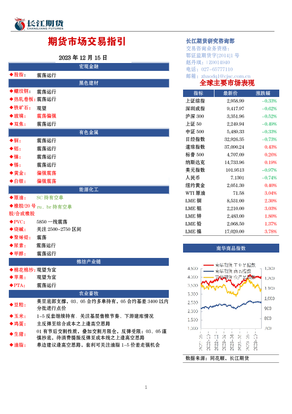 交易指引 商品期货 宏观经济 期货市场 长江期货