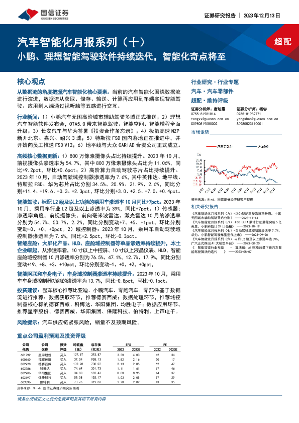【国信证券】【20231213】汽车和汽车零部件行业汽车智能化月报系列(十):小鹏、理想智能驾驶软件持续迭代,智能化奇点将至-68页