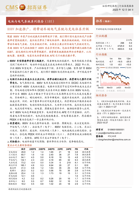 【海通证券】【20231204】电力设备及新能源行业电池与电气系统系列报告:800V加速推广,将带动车端电气系统与充电体系升级-32页