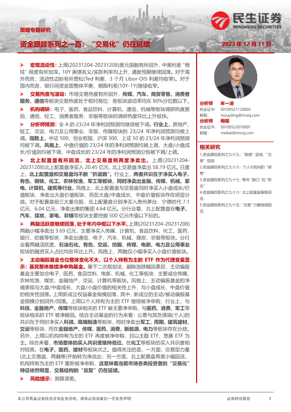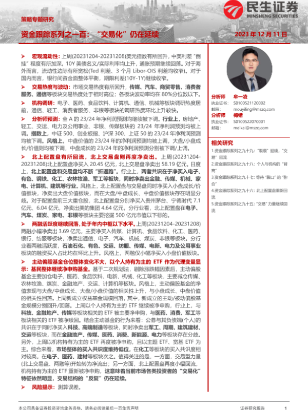 【民生证券】【20231211】策略专题研究:资金跟踪系列之一百:“交易化”仍在延续-36页