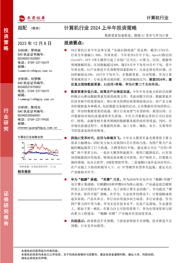 【东莞证券】【20231208】计算机行业2024上半年投资策略:数据要素加速推进,拥抱AI变革与华为计算-45页