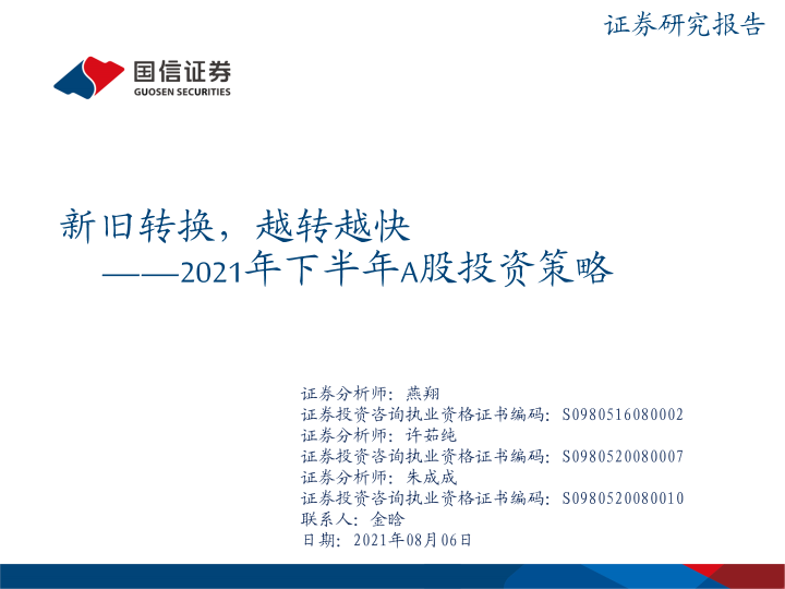 【国信证券】【20210806】2021年下半年A股投资策略:新旧转换,越转越快-22页