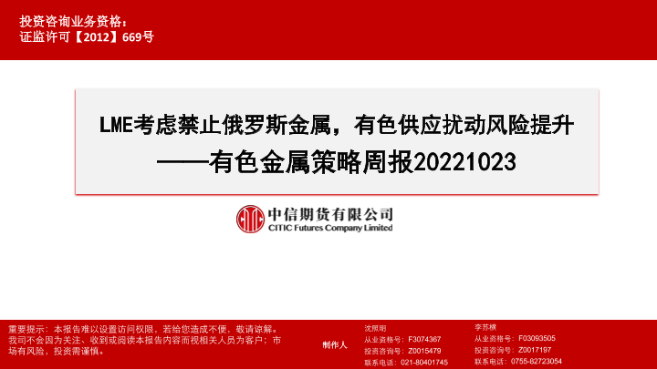 【中信期货】【20221023】有色金属策略周报:LME考虑禁止俄罗斯金属,有色供应扰动风险提升-102页