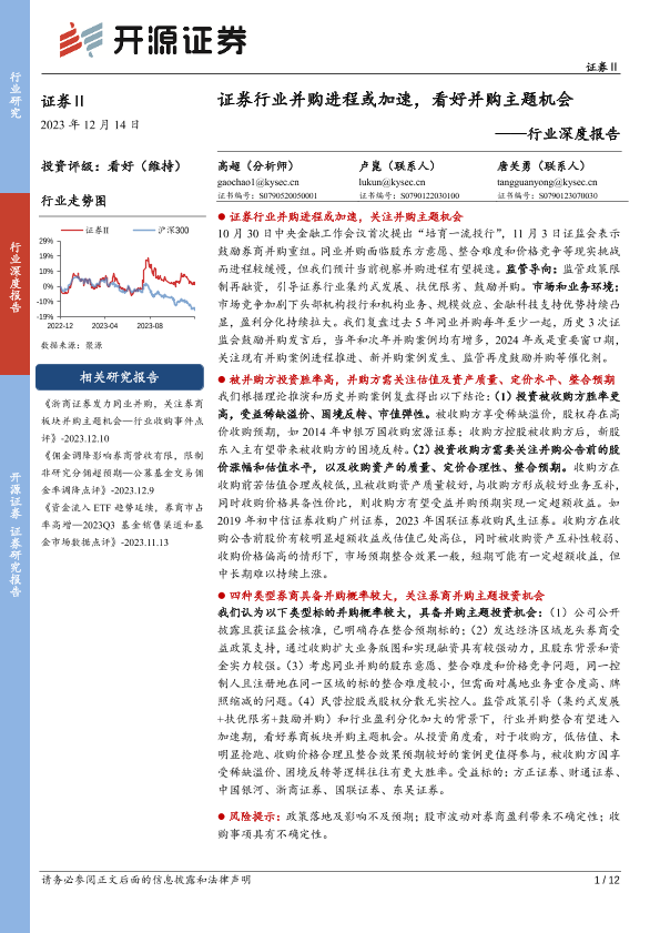 【开源证券】【20231214】证券Ⅱ行业深度报告:证券行业并购进程或加速,看好并购主题机会-12页