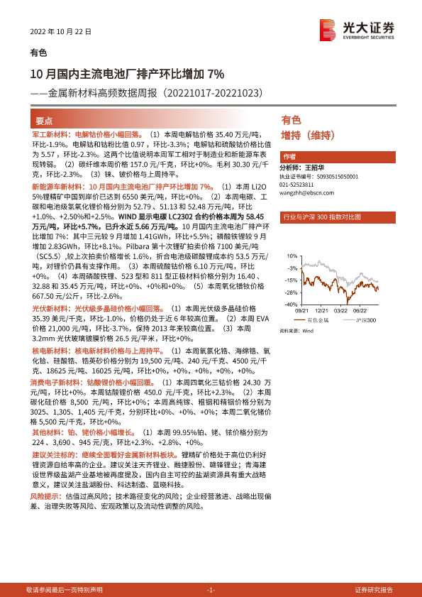 【光大证券】【20221022】有色金属行业金属新材料高频数据周报:10月国内主流电池厂排产环比增加7%-26页