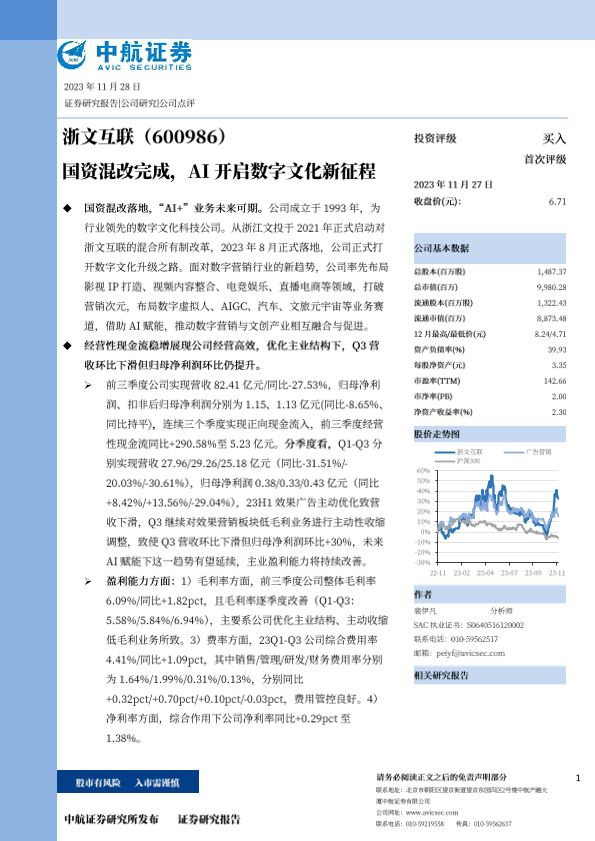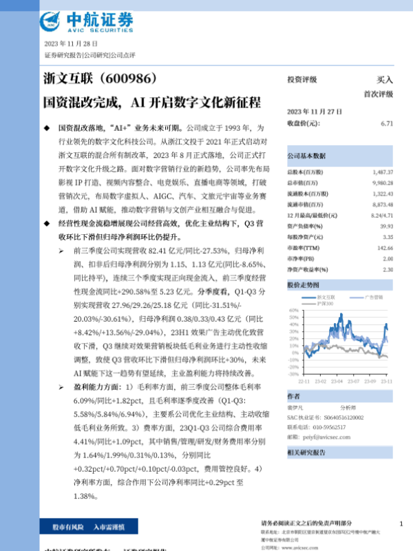 【中航证券】【20231127】首度覆盖:国资混改完成,AI开启数字文化新征程-6页