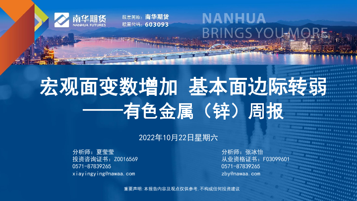 【南华期货】【20221022】有色金属(锌)周报:宏观面变数增加,基本面边际转弱-39页