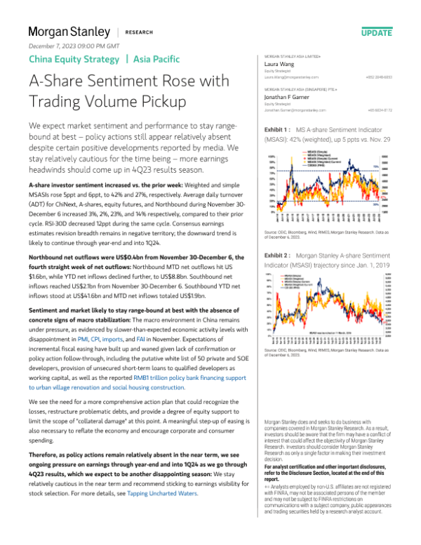 【Morgan Stanley】【2023】China Equity Strategy A-Share Sentiment Rose with Trading Volume Pickup-9页