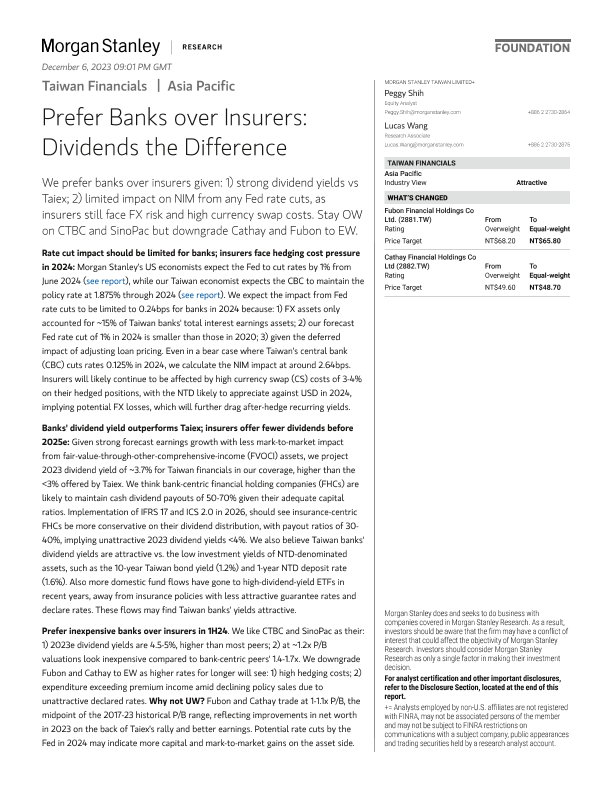 【Morgan Stanley】【2023】Taiwan Financials Prefer Banks over Insurers Dividends the Difference-35页