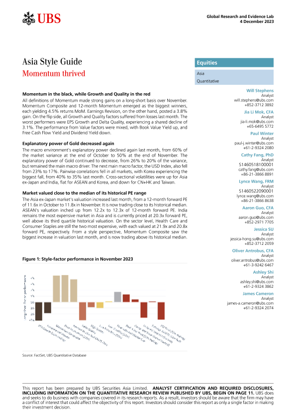 【UBS Securities Asia Limited】【20231204】UBS Equities-Asia Style Guide Momentum thrived-14页
