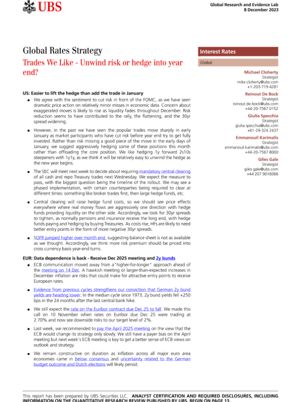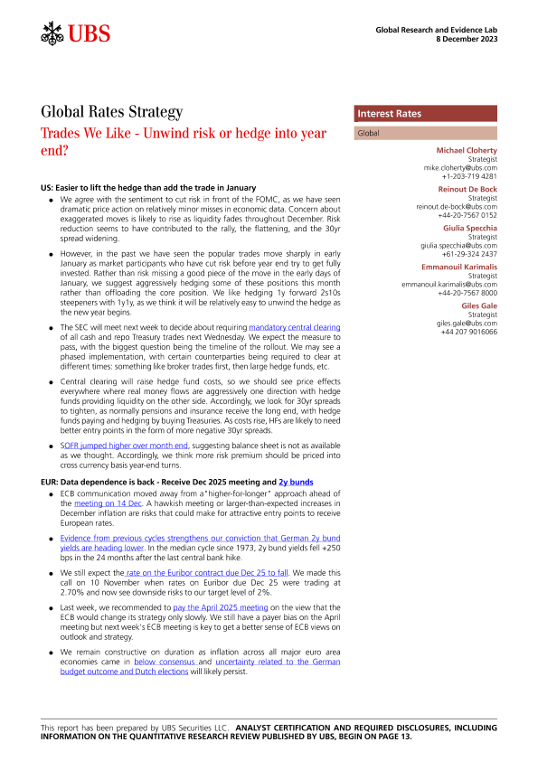 【UBS Securities LLC】【20231208】Global Rates Strategy _Trades We Like - Unwind risk or hedge into year end?-16页