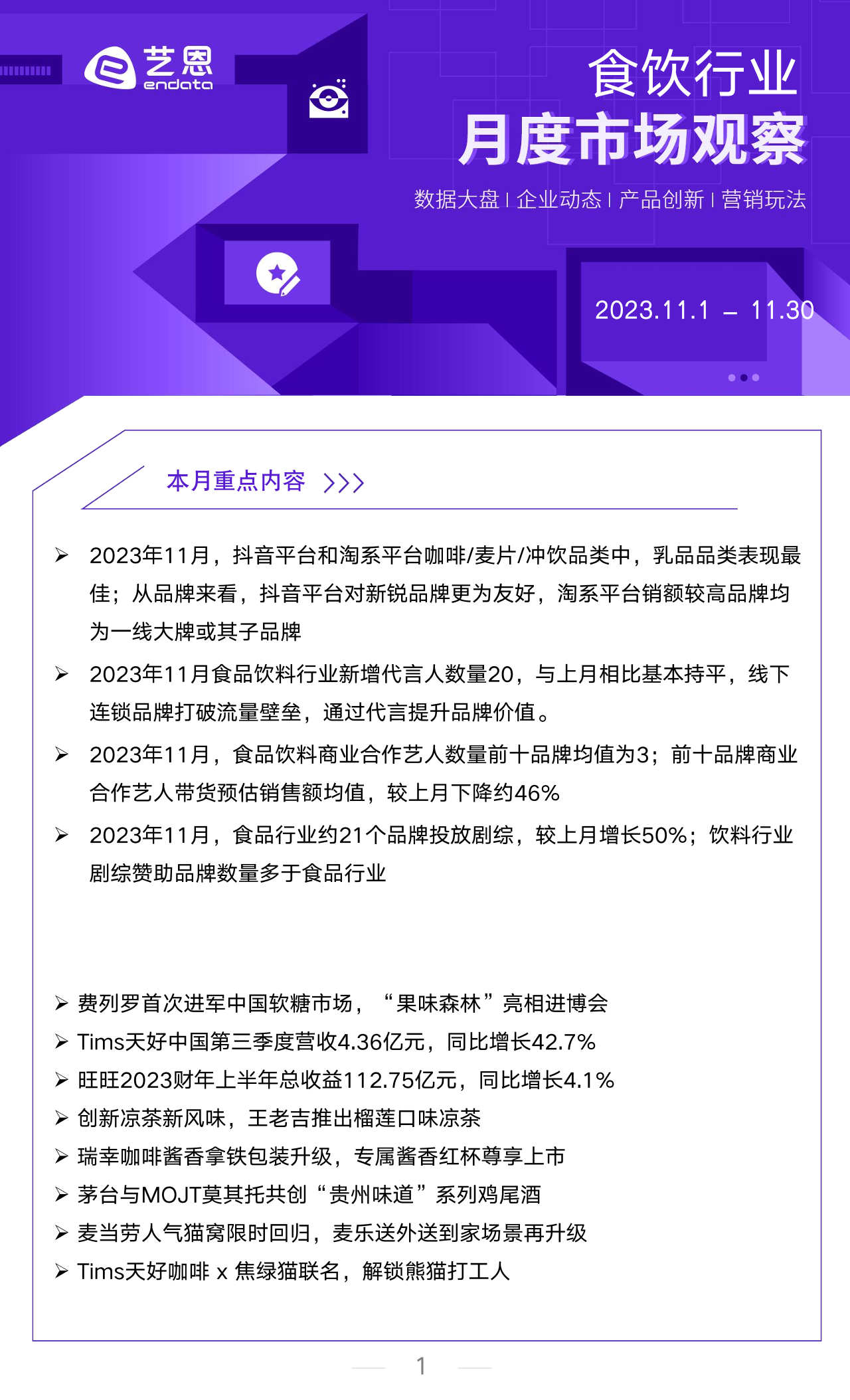 【艺恩ENDATA】【202312】11月食饮行业洞察报告-11页