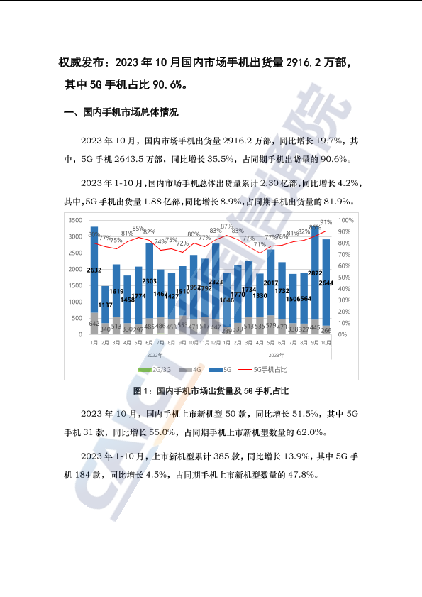 【中国信息通信研究院】【202310】2023年10月国内手机市场运行分析报告-3页