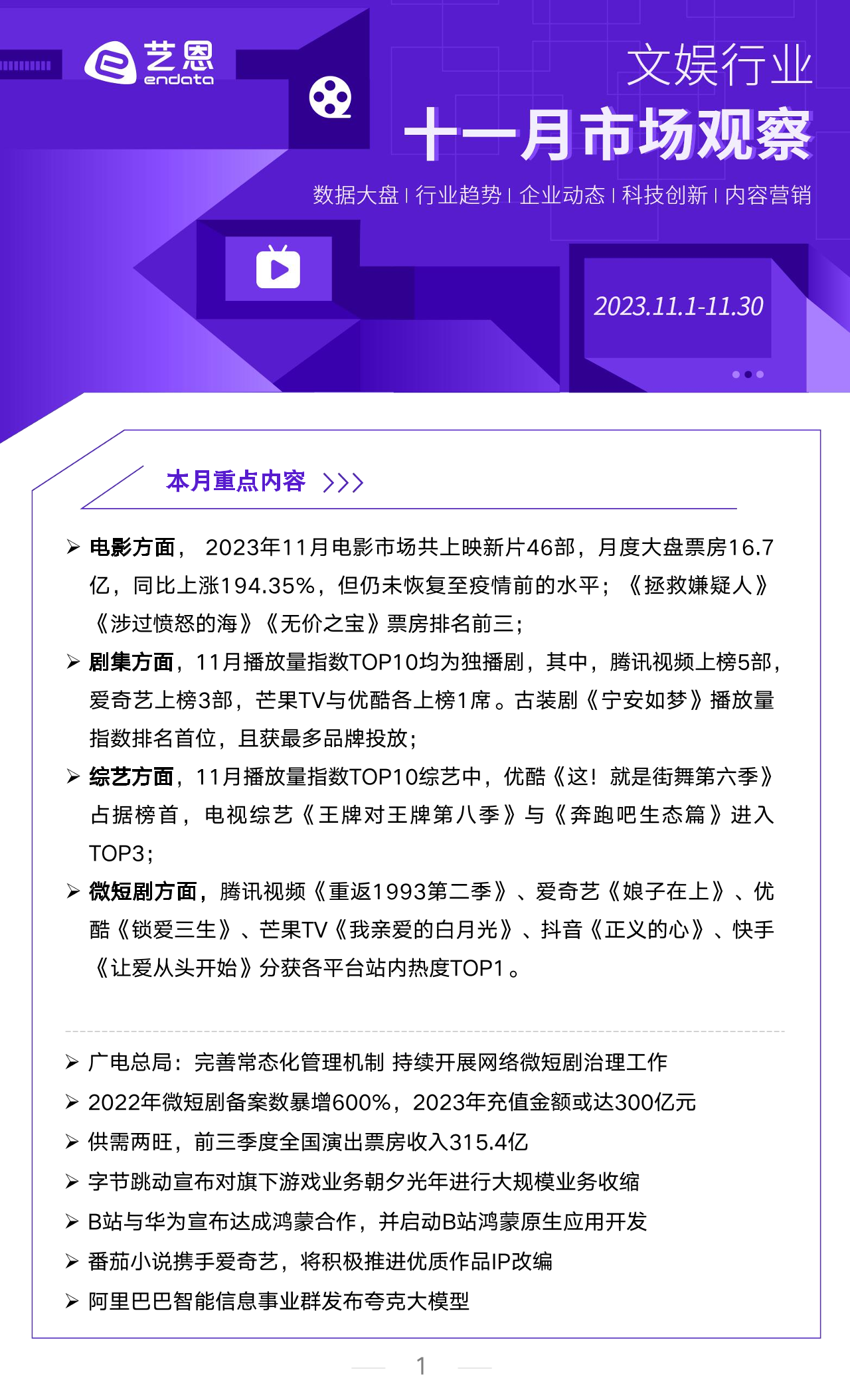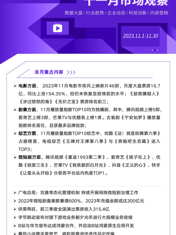 【艺恩ENDATA Inc.】【202312】2023年11月文娱行业市场观察-11页