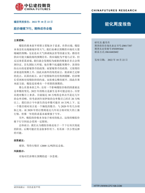 【中信建投期货】【20221022】橡胶周度报告:胶价继续下行,期待后市企稳-26页