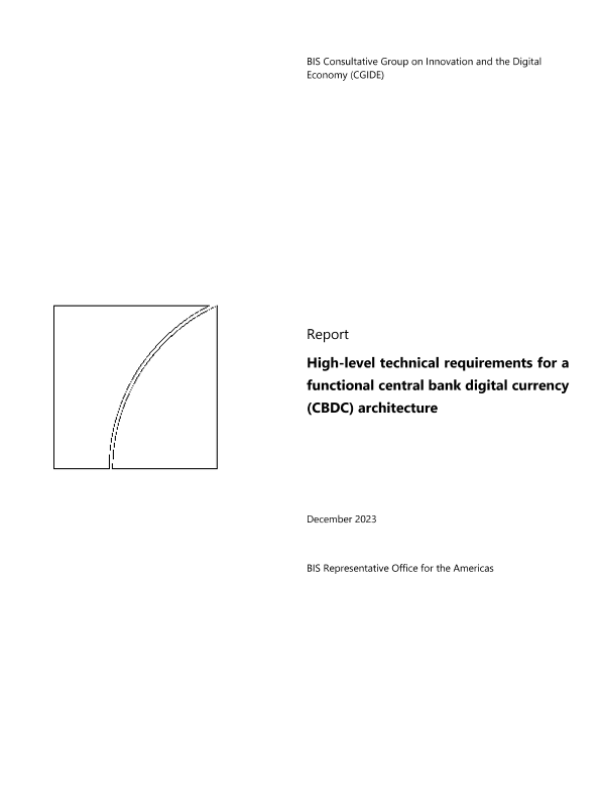 【Bank for International Settlements (BIS)】【202312】High-level technical requirements for a functional central bank digital currency (CBDC) architecture-20页