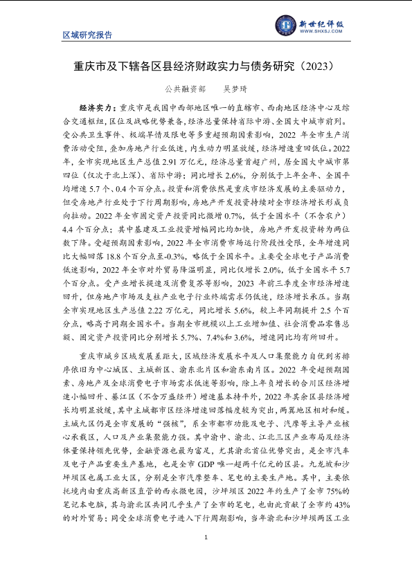 【新世纪评级】【2023】重庆市及下辖各区县经济财政实力与债务研究(2023)-34页