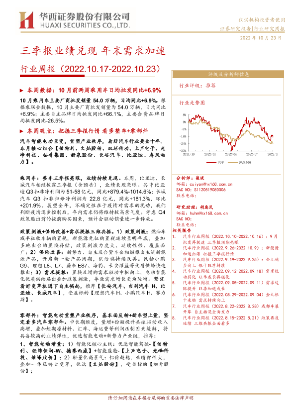 【华西证券】【20221023】汽车行业周报:三季报业绩兑现,年末需求加速-21页