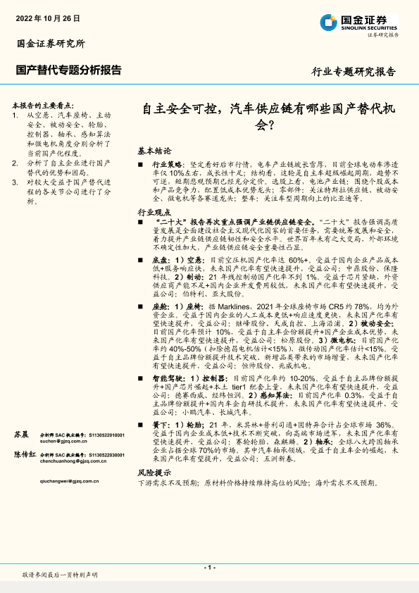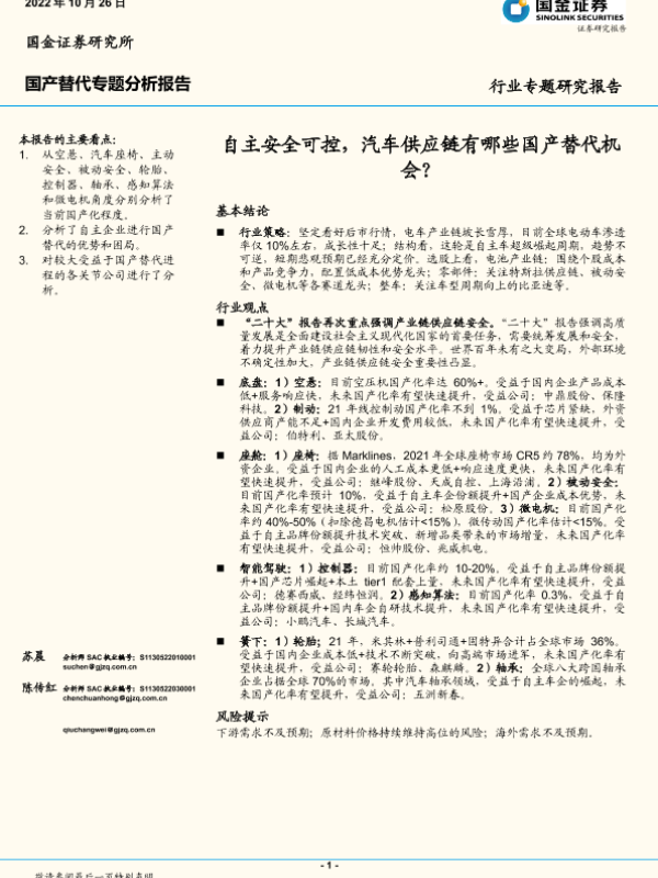 【国金证券】【20221026】汽车行业国产替代专题分析报告:自主安全可控,汽车供应链有哪些国产替代机会?-38页