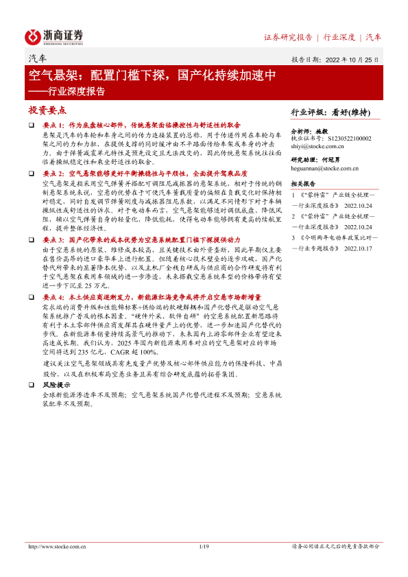 【浙商证券】【20221025】汽车行业深度报告:空气悬架,配置门槛下探,国产化持续加速中-19页