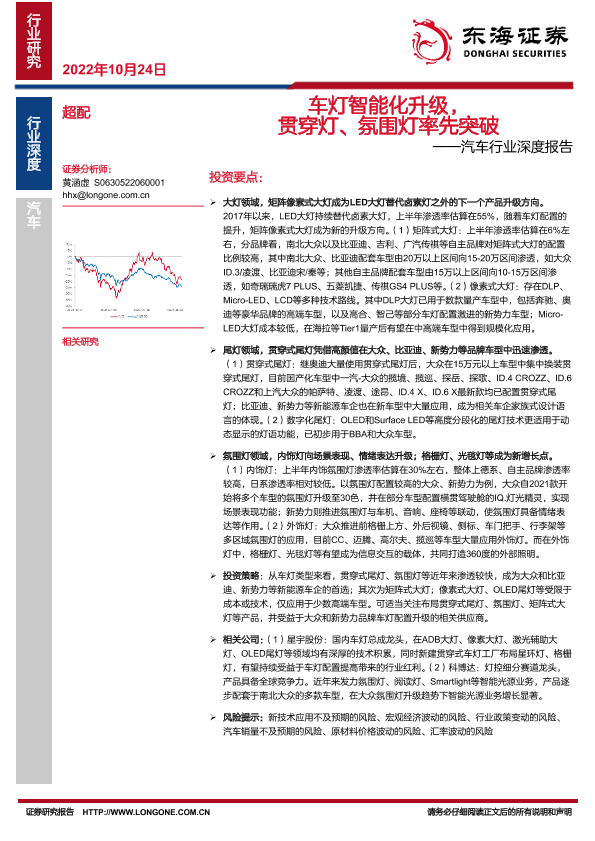 【东海证券】【20221024】车灯智能化升级,贯穿灯、氛围灯率先突破——汽车行业深度报告-26页