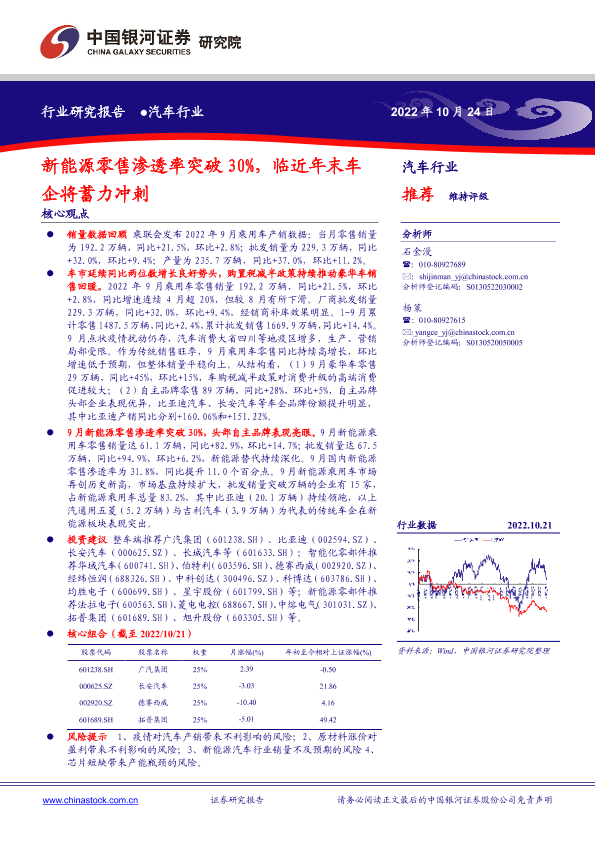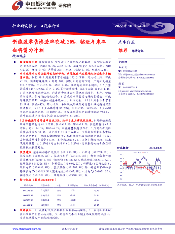 【银河证券】【20221024】汽车行业:新能源零售渗透率突破30%,临近年末车企将蓄力冲刺-20页