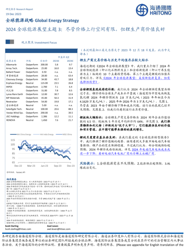 【海通国际】【20231219】2024全球能源展望主题3:尽管价格上行空间有限,但锂生产商价值良好-40页