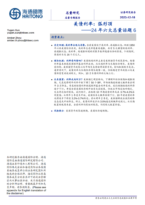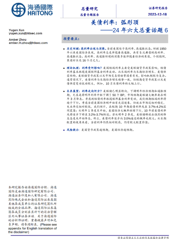 【海通国际】【20231218】24年六大总量话题6:美债利率:弧形顶-18页
