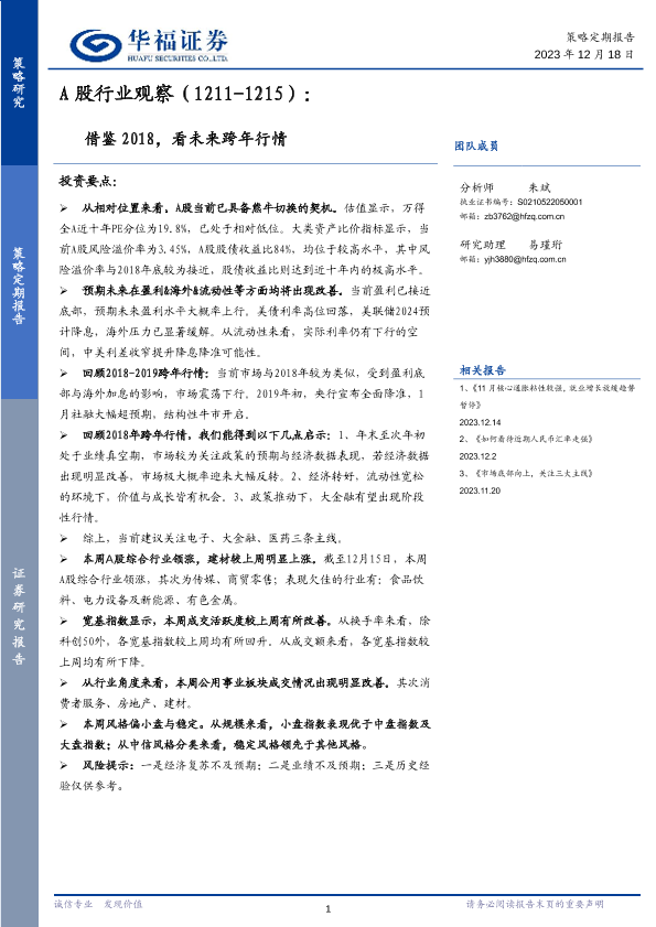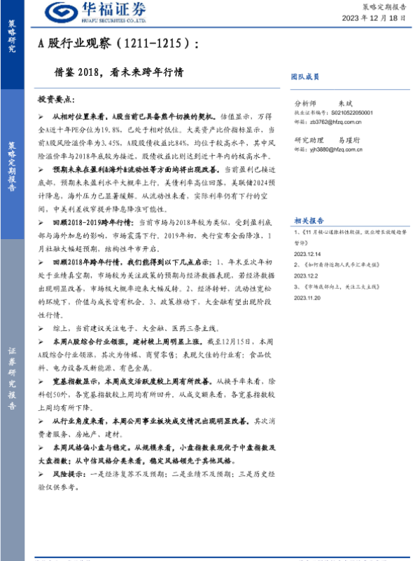 【华福证券】【20231218】A股行业观察:借鉴2018,看未来跨年行情-13页