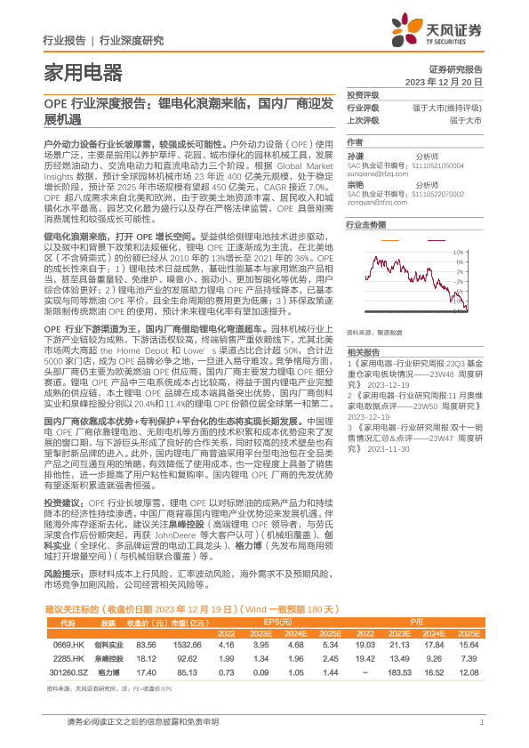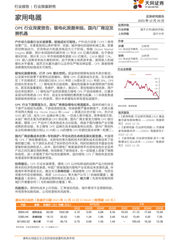 【天风证券】【20231220】OPE行业深度报告:锂电化浪潮来临,国内厂商迎发展机遇-23页