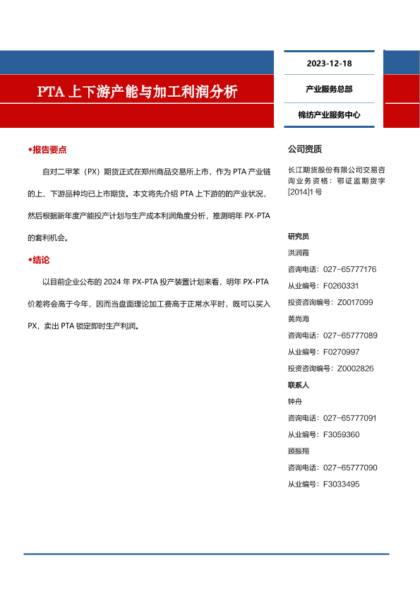 【长江期货】【20231218】PTA上下游产能与加工利润分析-12页