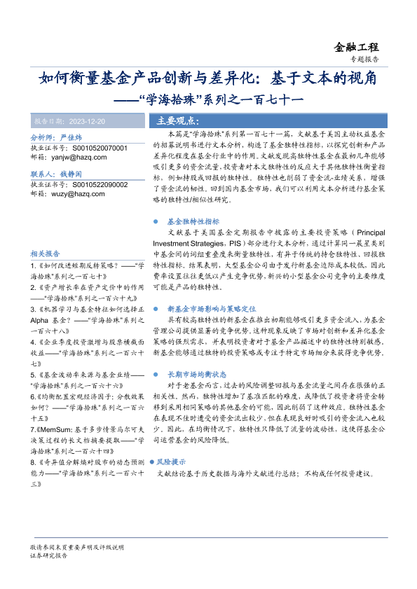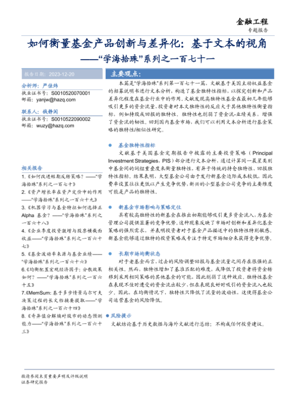 【华安证券】【20231220】如何衡量基金产品创新与差异化:基于文本的视角-18页