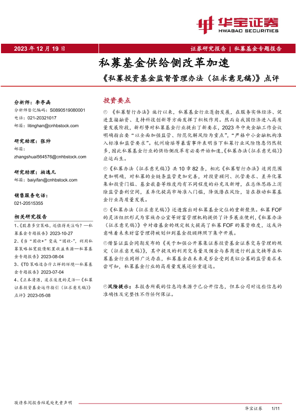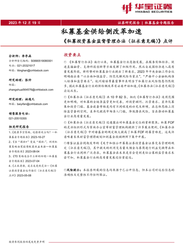 【华宝证券】【20231219】《私募投资基金监督管理办法(征求意见稿)》点评:私募基金供给侧改革加速-11页