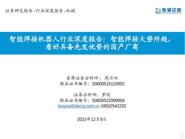 【东吴证券】【20231209】智能焊接机器人行业深度报告-智能焊接大势所趋-看好具备先发优势的国产厂商-53页