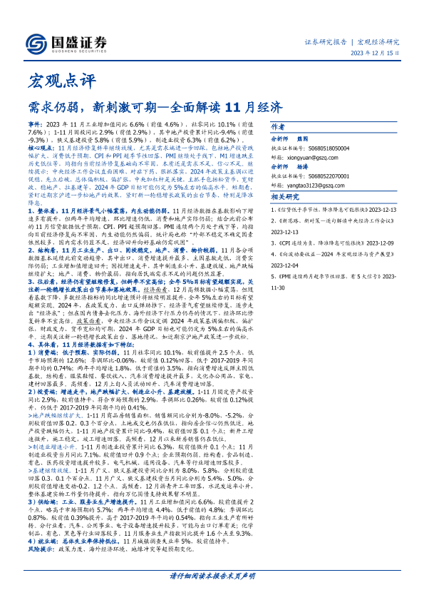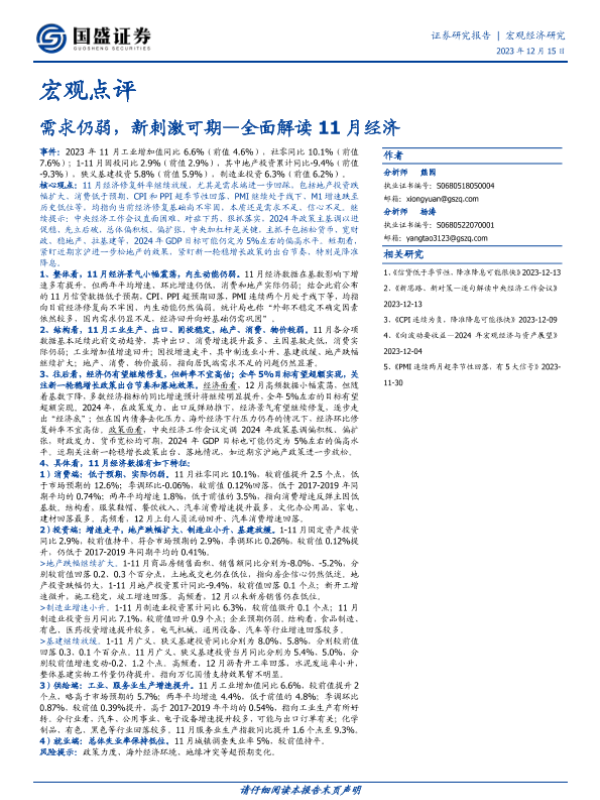 【国盛证券】【20231215】全面解读11月经济:需求仍弱,新刺激可期-13页