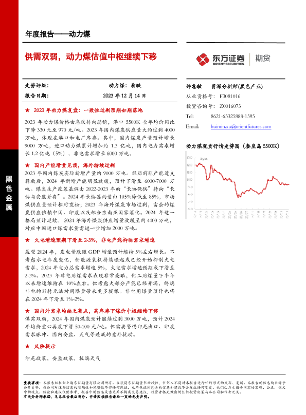 【东证期货】【20231214】动力煤年度报告:供需双弱,动力煤估值中枢继续下移-17页