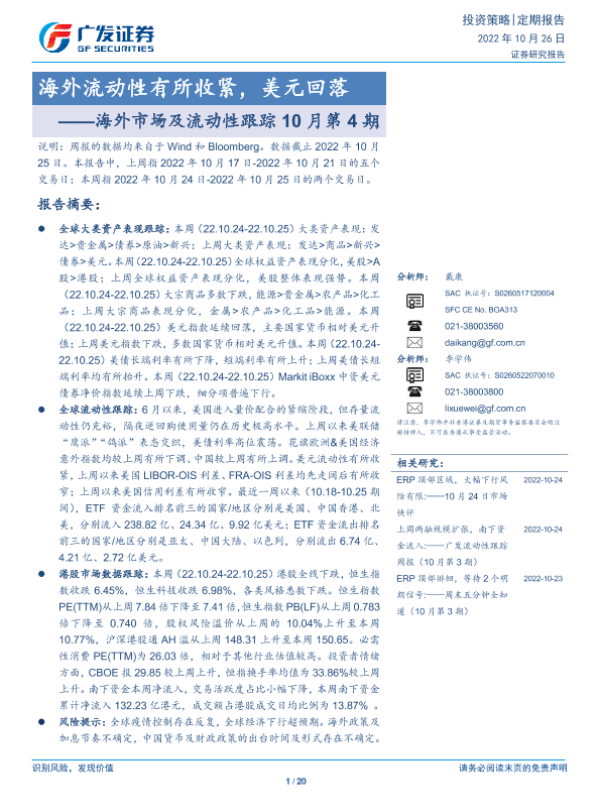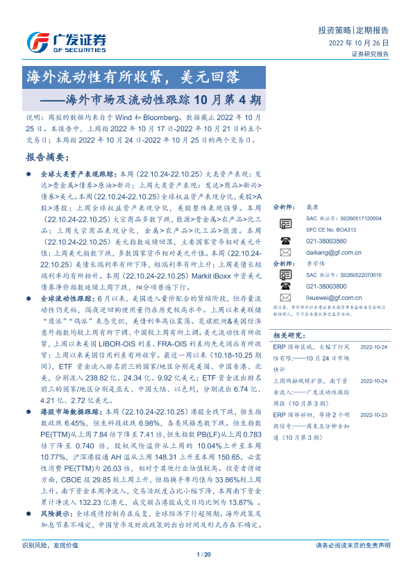 【广发证券】【20221026】海外市场及流动性跟踪10月第4期:海外流动性有所收紧,美元回落-20页
